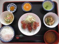 (スパゲティ、、胡瓜、ハム、ベーコン)