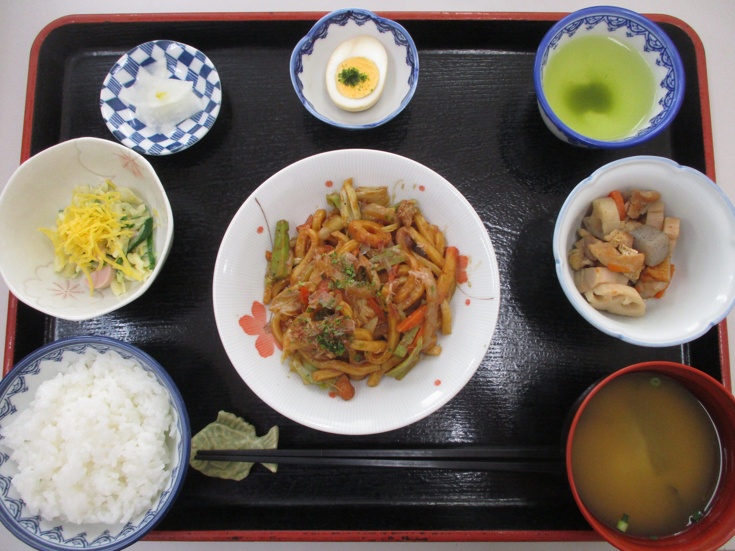 (うどん、豚肉、キャベツ、人参、玉ねぎ、竹輪、角天、鰹節、青のり)