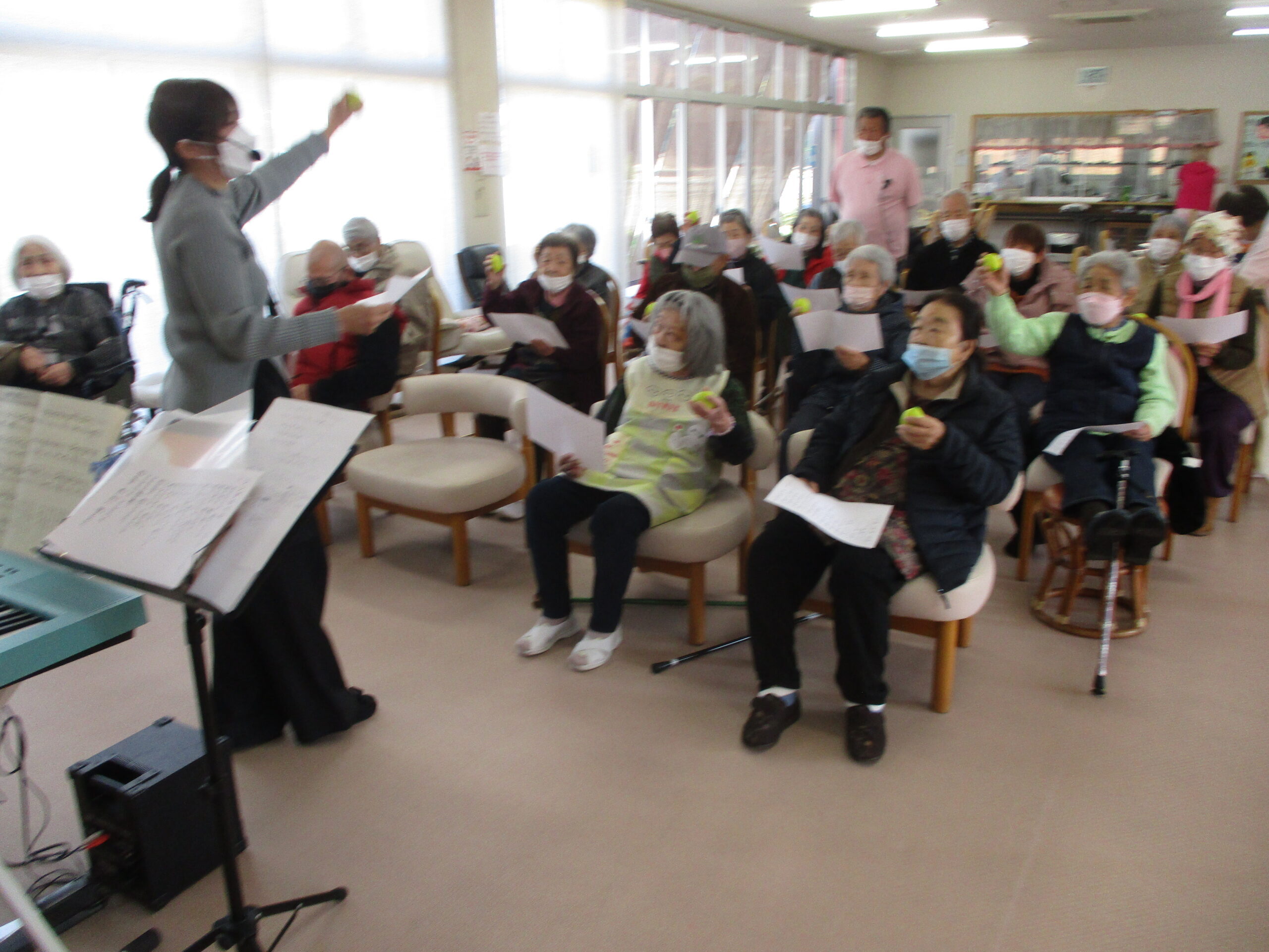 レモン型のマラカスを使っての音楽療育でした。