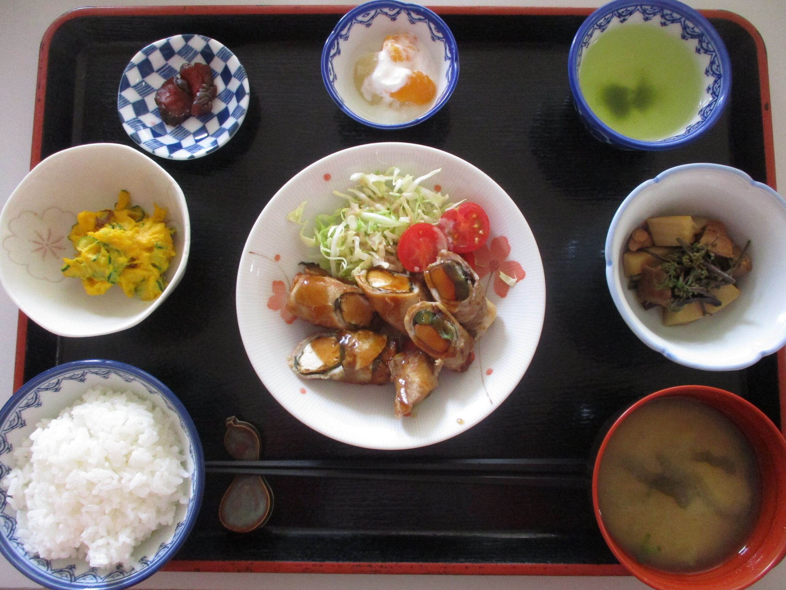 (豚肉、厚揚げ、インゲン豆、カニカマ、大葉、キャベツ、トマト)