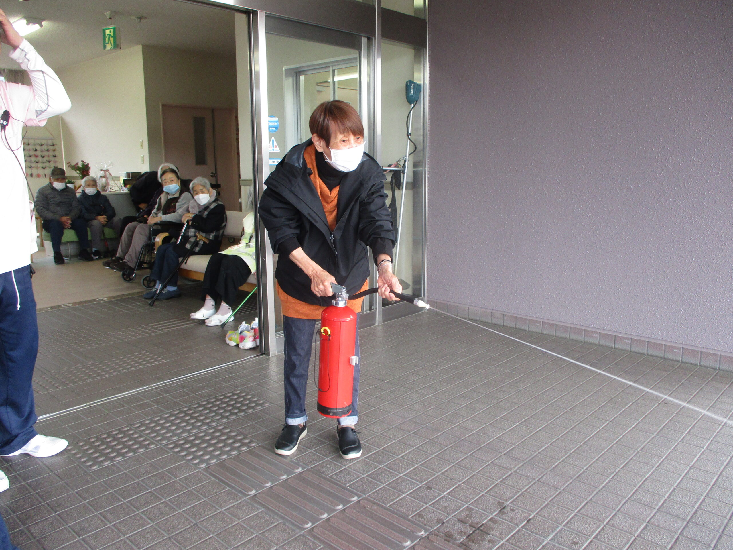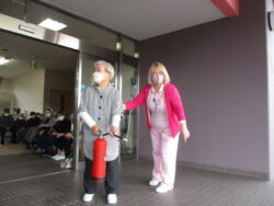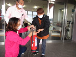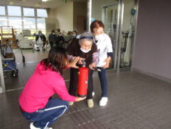 消火訓練、通報訓練、避難訓練をし、他の災害についてもお話をしました。