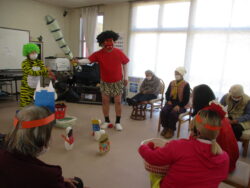 今日は節分でレクレーションでは職員は鬼に扮しています。