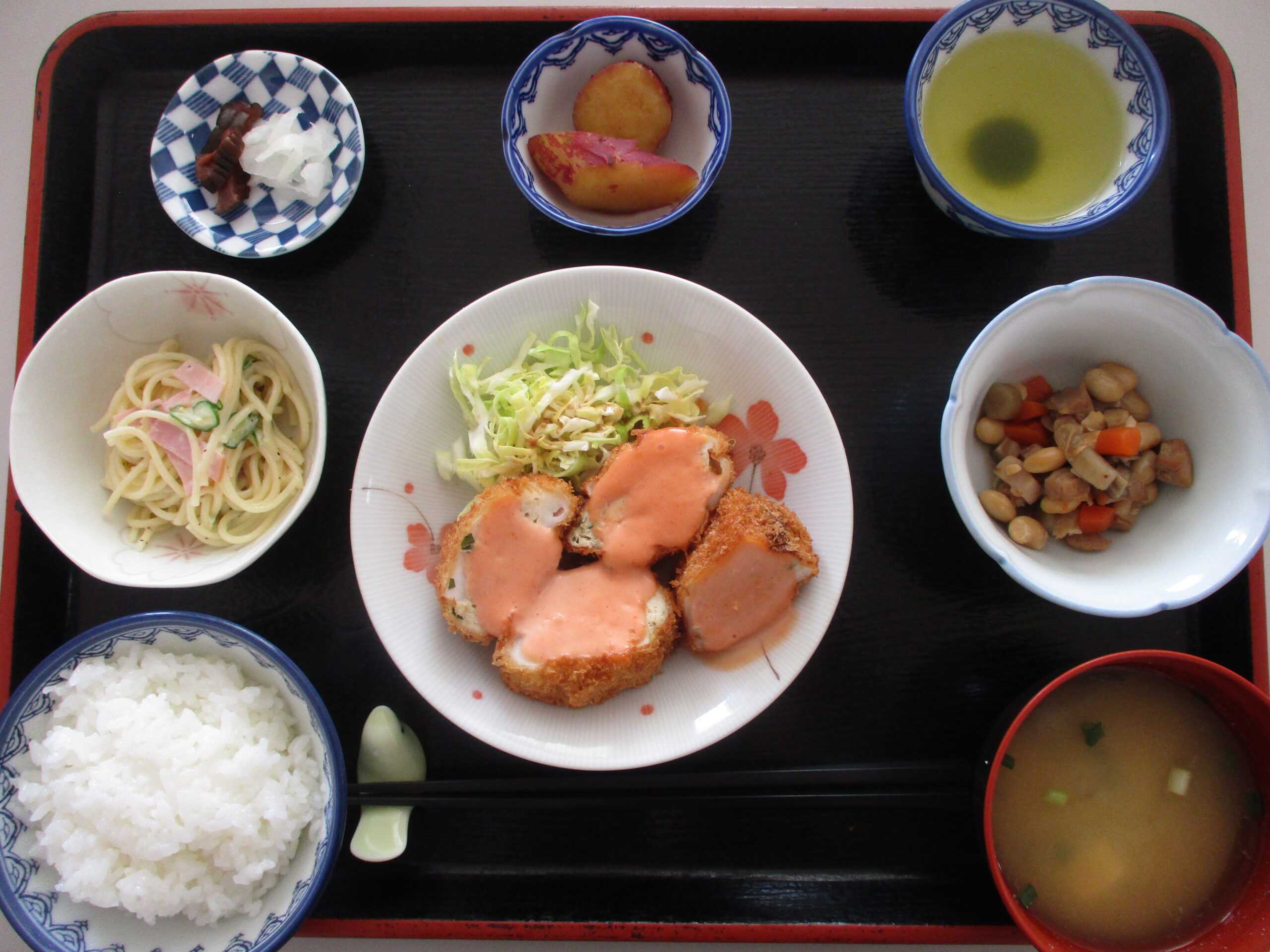 献立には大豆が入っていますし、3時のおやつは塩豆大福です。